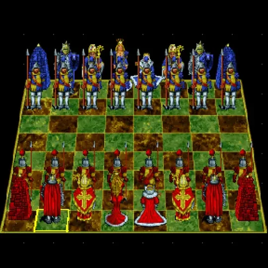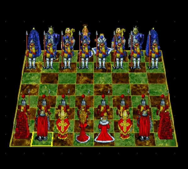 Battle Chess flexes the 3DO’s muscle with smooth, pre-rendered animations that bring brutality and humour to each capture. The standard board is clean and readable, but every combat scene steals the spotlight, from knights impaling bishops to queens dispatching pawns with theatrical flourish. Pieces brim with personality, and although it’s far from photorealistic, the over-the-top sequences make the game a visual treat for its time.