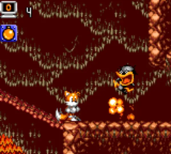 Tails Adventure bursts with colour, rendering Cocoa Island’s jungles, caves, labs, and volcanic depths with gorgeous detail for a handheld game. Tails’ sprite is expressive, with fun animations for flying, digging, and tinkering with gadgets. Enemies such as robotic birds and bomb-hurling Kukkus add charm, though the Game Gear’s limited resolution does cram some of the finer details. Parallax backgrounds help the world feel surprisingly alive.