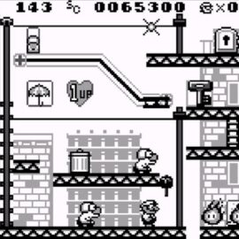 Mario’s sprite is sprightly, with slick animations for flips, throws, and tumbles. Donkey Kong’s menacing grin and the varied worlds—from construction sites to pirate ships—burst with detail. Backgrounds like crumbling ruins or jungles use clever dithering to pop. The crisp art and cinematic cutscenes make every level a visual treat.