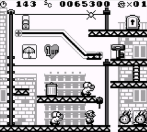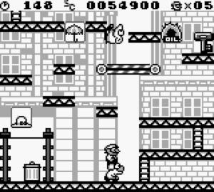 Mario’s sprite is sprightly, with slick animations for flips, throws, and tumbles. Donkey Kong’s menacing grin and the varied worlds—from construction sites to pirate ships—burst with detail. Backgrounds like crumbling ruins or jungles use clever dithering to pop. The crisp art and cinematic cutscenes make every level a visual treat.